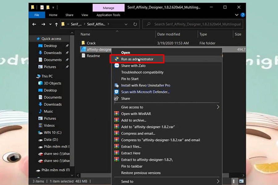Bước 1 : Giải nén phần mềm Affinity Designer 2019