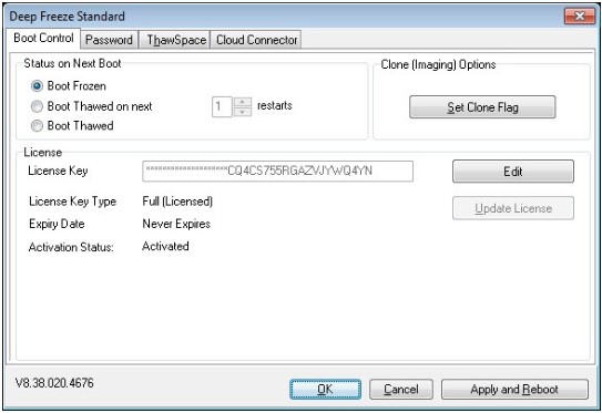 Boot Thawed: Hủy chế độ đóng băng sau khi máy tính đươc khởi động lại.