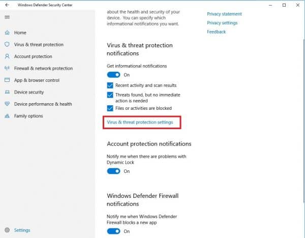 Bước 2: Click chọn Virus & threat protection settings.