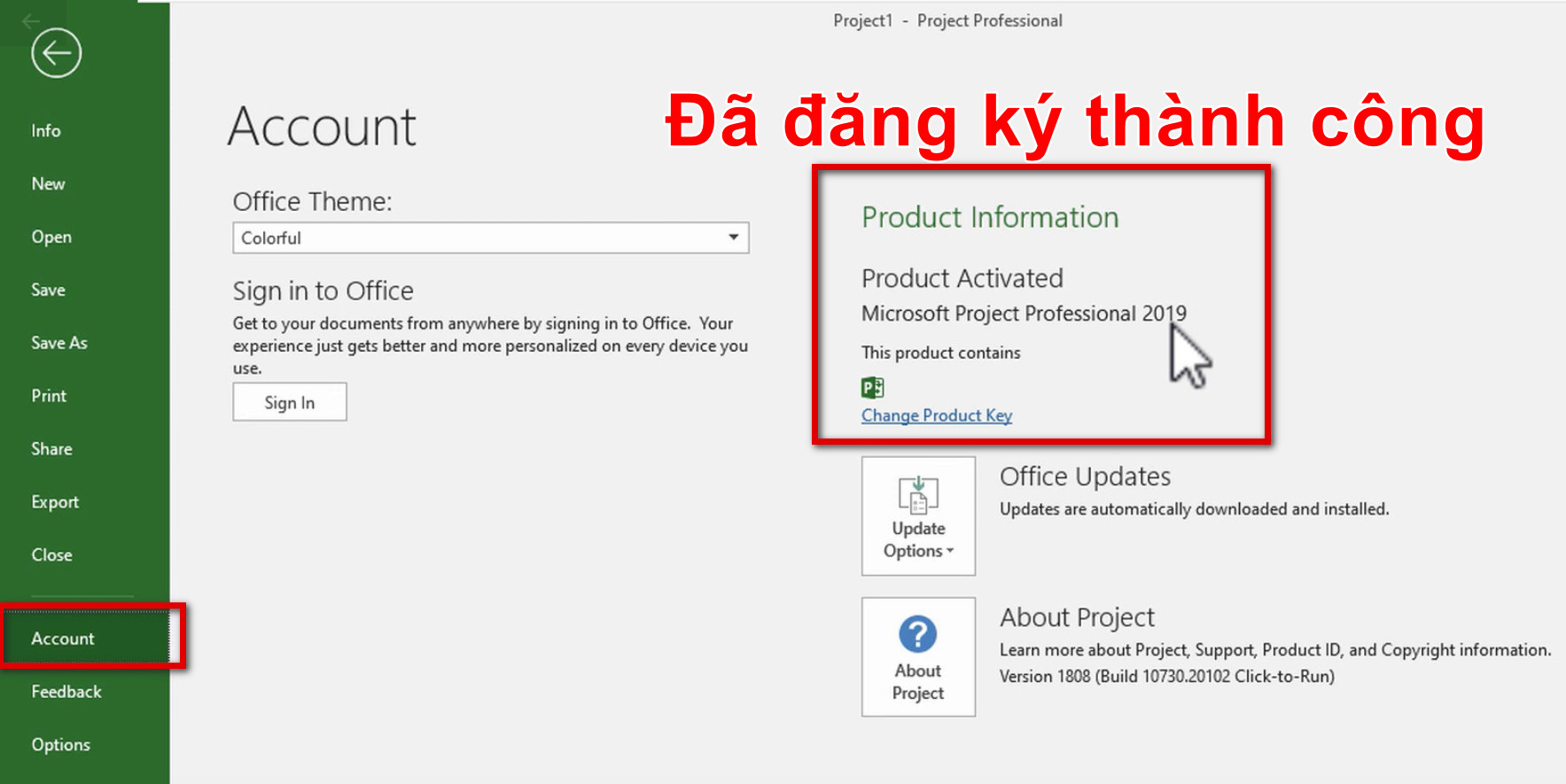 Vào mục Accout để kiểm tra thành quả. Như bên dưới là đã kích hoạt thành công.