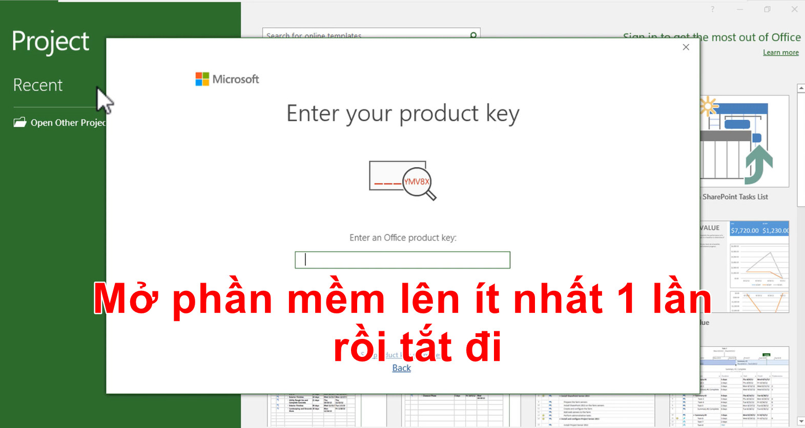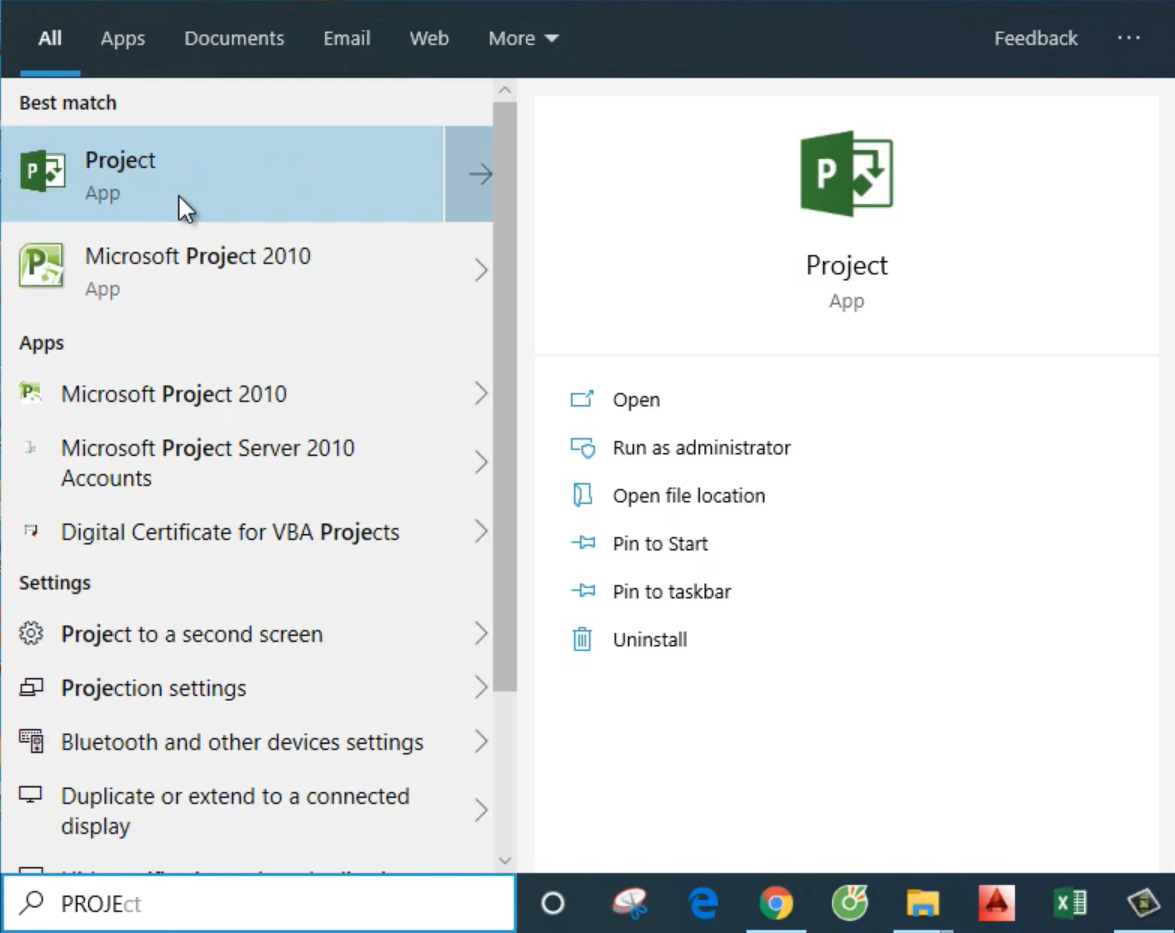 Như vậy là đã kích hoạt thành công. Giờ bạn có thể tìm thấy phần mềm Project 2019 Full crack bằng cách gõ tìm kiếm ở dưới thanh Taskbar. Bạn có thể đưa icon ra màn hình Desktop nếu muốn để tiện sử dụng cho những lần sau.