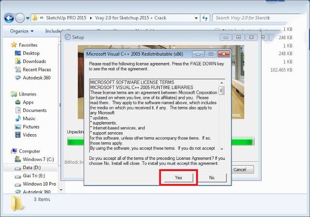 B1: Đầu tiên thì vào thư mục Vray 2.0 for Sketchup 2015 + Crack Chạy file vray 2.0_sketchup_2015_win_x64 xem hình bên dưới nhé