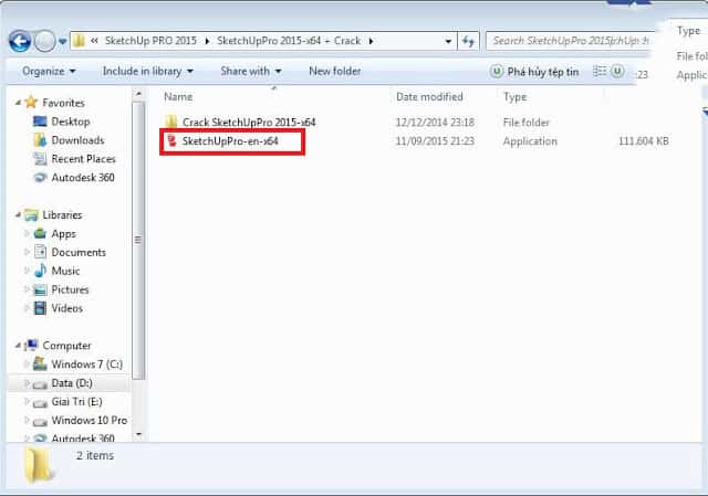 B8: Sau đó thì bạ hãy vào thư mục SketchUpPro 2015-x64 + Crack lúc nãy rồi thì hãy bấm vào thư mục Crack SketchUpPro 2015-x64, sau đó copy hết tất cả các file trong đó